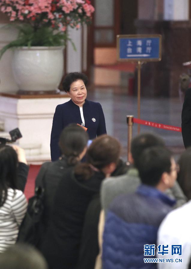 3月8日,十三屆全國人大二次會議在北京人民大會堂舉行第二次全體會議。這是中國氣象局局長劉雅鳴步入“部長通道”,準(zhǔn)備接受采訪。 新華社記者金立旺攝