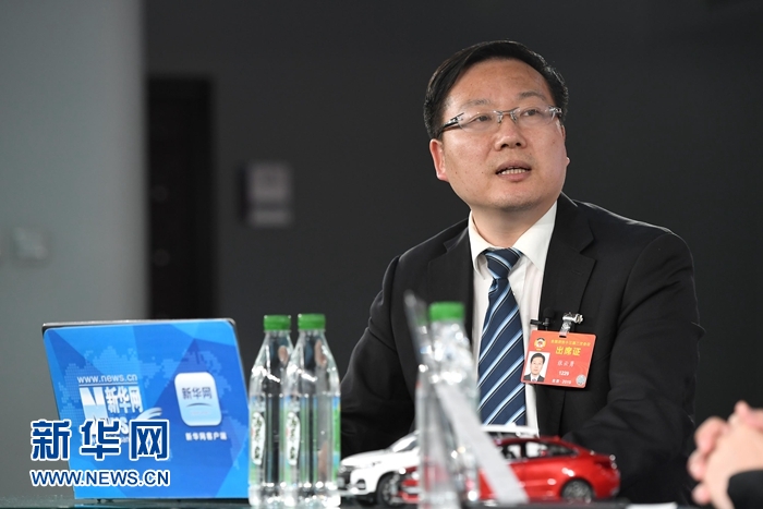 3月8日,全國政協(xié)委員、中國聯(lián)通研究院院長張?jiān)朴伦隹托氯A網(wǎng)2019全國兩會特別報(bào)道。新華網(wǎng) 李相博 攝