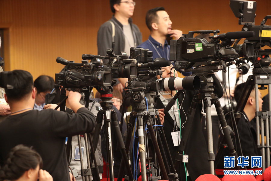 十三屆全國人大二次會議新聞中心3月8日10時在梅地亞中心新聞發(fā)布廳舉行記者會,邀請國務委員兼外交部長王毅就“中國外交政策和對外關(guān)系”相關(guān)問題回答中外記者提問。圖為記者在現(xiàn)場準備。新華網(wǎng)/中國政府網(wǎng) 陳杰 攝
