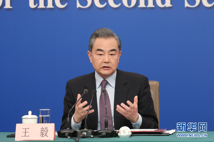十三屆全國人大二次會議新聞中心3月8日10時在梅地亞中心新聞發(fā)布廳舉行記者會,邀請國務(wù)委員兼外交部長王毅就“中國外交政策和對外關(guān)系”相關(guān)問題回答中外記者提問。圖為王毅回答記者提問。新華網(wǎng)/中國政府網(wǎng) 陳杰 攝