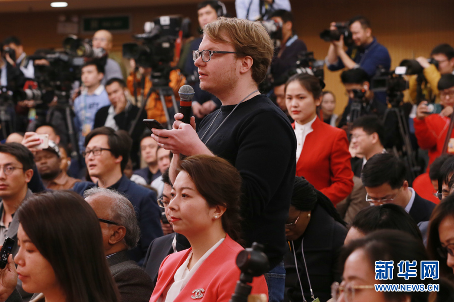 十三屆全國人大二次會議新聞中心3月8日10時在梅地亞中心新聞發(fā)布廳舉行記者會,邀請國務委員兼外交部長王毅就“中國外交政策和對外關系”相關問題回答中外記者提問。圖為彭博社記者。新華網/中國政府網 馬娟 攝