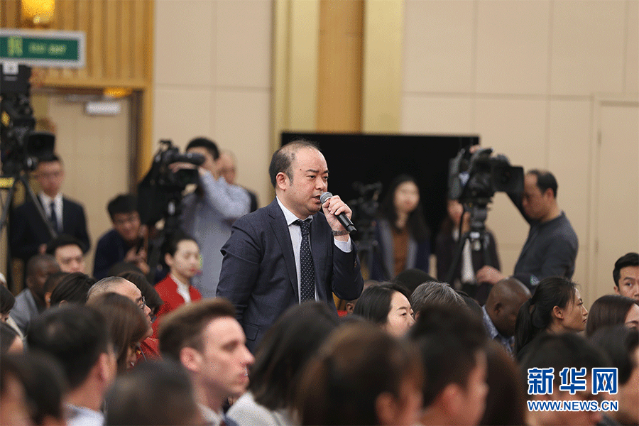十三屆全國人大二次會議新聞中心3月9日(星期六)10時30分在梅地亞中心新聞發(fā)布廳舉行記者會,邀請商務(wù)部部長鐘山、副部長兼國際貿(mào)易談判副代表王受文、副部長錢克明就“促進形成強大國內(nèi)市場 推動全方位對外開放”相關(guān)問題回答中外記者提問。圖為日本經(jīng)濟新聞記者提問。新華網(wǎng)/中國政府網(wǎng) 劉廈 攝
