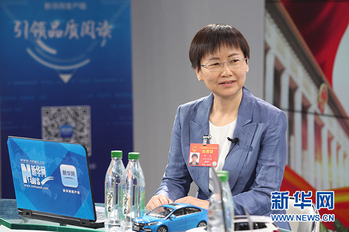 全國(guó)人大代表、中國(guó)信息通信研究院院長(zhǎng)劉多做客新華網(wǎng)。新華網(wǎng) 郭小天 攝