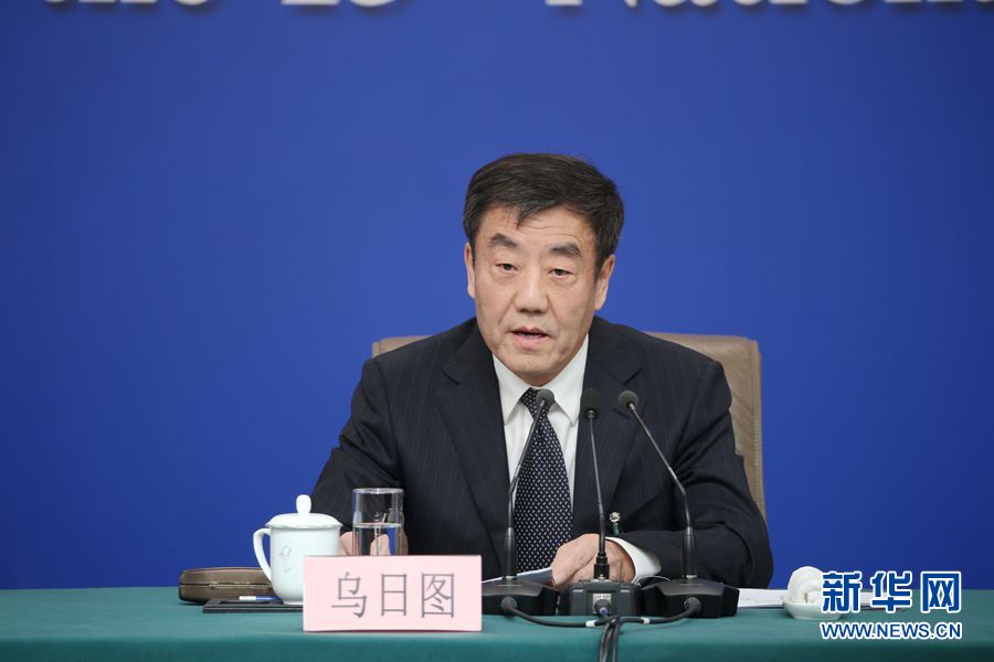 十三屆全國人大二次會議新聞中心3月9日在梅地亞中心新聞發(fā)布廳舉行記者會,邀請全國人大農(nóng)業(yè)與農(nóng)村委員會主任委員陳錫文、全國人大財政經(jīng)濟(jì)委員會副主任委員烏日圖、全國人大常委會法制工作委員會副主任劉俊臣、全國人大常委會法制工作委員會副主任許安標(biāo)、全國人大環(huán)境與資源保護(hù)委員會委員程立峰就“人大立法工作”相關(guān)問題回答記者提問。圖為全國人大財政經(jīng)濟(jì)委員會副主任委員烏日圖。新華網(wǎng)/中國政府網(wǎng) 劉廈 攝