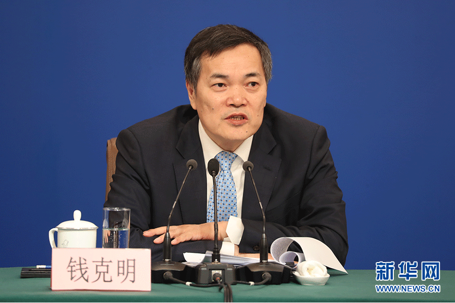 十三屆全國人大二次會議新聞中心3月9日(星期六)10時30分在梅地亞中心新聞發(fā)布廳舉行記者會,邀請商務部部長鐘山、副部長兼國際貿(mào)易談判副代表王受文、副部長錢克明就“促進形成強大國內(nèi)市場 推動全方位對外開放”相關(guān)問題回答中外記者提問。圖為錢克明回答記者提問。新華網(wǎng)/中國政府網(wǎng) 陳杰 攝