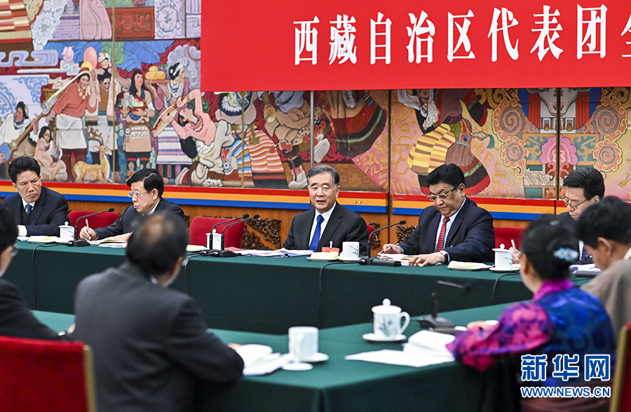 汪洋在西藏代表團(tuán)參加審議。在聽(tīng)取普布頓珠、格桑卓嘎、扎西江村等代表發(fā)言后,汪洋表示,完全贊成栗戰(zhàn)書(shū)委員長(zhǎng)所作的全國(guó)人大常委會(huì)工作報(bào)告。汪洋充分肯定過(guò)去一年西藏各項(xiàng)事業(yè)發(fā)展成績(jī),指出西藏經(jīng)濟(jì)發(fā)展和社會(huì)穩(wěn)定持續(xù)向好,但也要看到風(fēng)險(xiǎn)挑戰(zhàn)。要深入學(xué)習(xí)貫徹習(xí)近平總書(shū)記關(guān)于西藏工作的重要論述,牢牢把握維護(hù)祖國(guó)統(tǒng)一、加強(qiáng)民族團(tuán)結(jié)的著眼點(diǎn)和著力點(diǎn),牢牢把握依法治藏、富民興藏、長(zhǎng)期建藏、凝聚人心、夯實(shí)基礎(chǔ)的重要原則,居安思危、穩(wěn)中求進(jìn),進(jìn)一步鞏固社會(huì)大局穩(wěn)定好局面,進(jìn)一步加強(qiáng)寺廟管理能力建設(shè),進(jìn)一步提高脫貧攻堅(jiān)質(zhì)量,確保雪域高原安定祥和、各族人民安居樂(lè)業(yè)。
