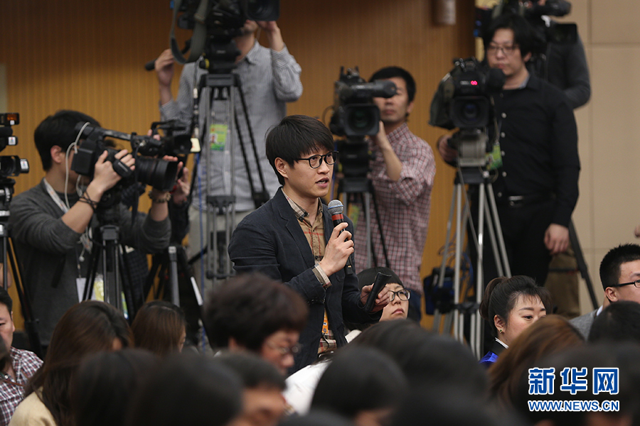 十三屆全國人大二次會議新聞中心于3月10日(星期日)上午10時30分在梅地亞中心新聞發(fā)布廳舉行記者會,邀請中國人民銀行行長易綱,副行長陳雨露,副行長、國家外匯管理局局長潘功勝,副行長范一飛就“金融改革與發(fā)展”相關(guān)問題回答記者提問。圖為中央廣播電視總臺國廣記者提問。新華網(wǎng)/中國政府網(wǎng) 劉廈 攝