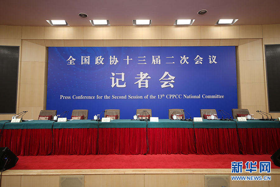 全國政協(xié)十三屆二次會議3月10日(星期日)上午8:45在梅地亞兩會新聞中心舉行記者會,邀請5位政協(xié)委員就“新時代政協(xié)履職”回答記者提問。圖為記者會現(xiàn)場。新華網、中國政府網進行現(xiàn)場直播。新華網/中國政府網 劉廈攝