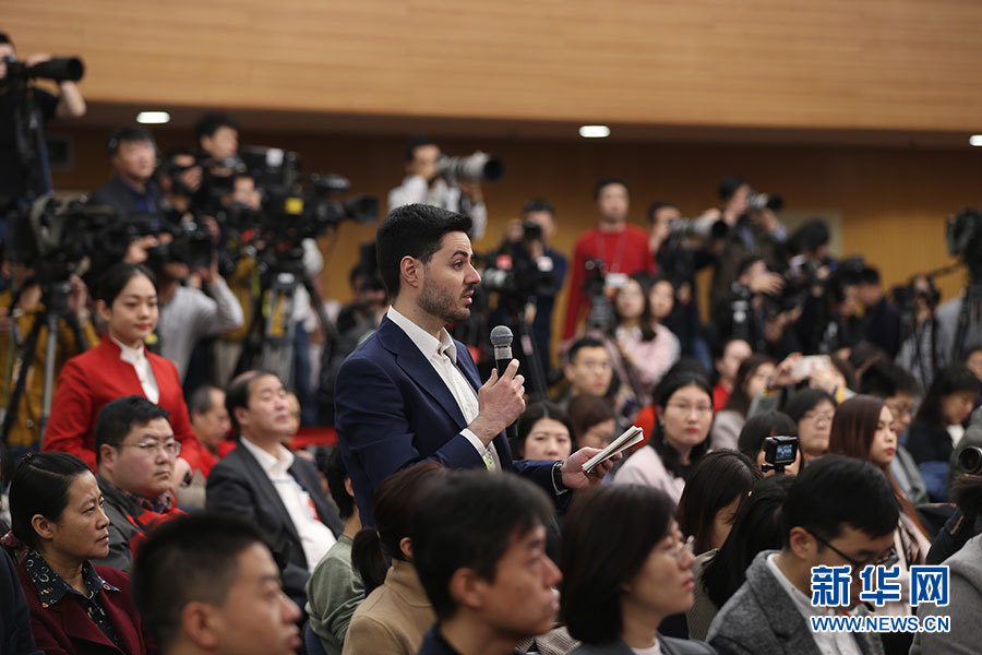 全國政協(xié)十三屆二次會議3月10日(星期日)上午8:45在梅地亞兩會新聞中心舉行記者會,邀請5位政協(xié)委員就“新時代政協(xié)履職”回答記者提問。新華網(wǎng)、中國政府網(wǎng)進行現(xiàn)場直播。圖為中國國際廣播電臺記者提問。新華網(wǎng)/中國政府網(wǎng) 劉廈攝