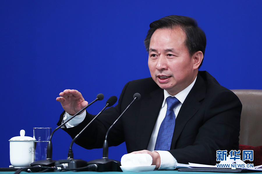 十三屆全國(guó)人大二次會(huì)議新聞中心于3月11日(星期一)15時(shí)在梅地亞中心新聞發(fā)布廳舉行記者會(huì),邀請(qǐng)生態(tài)環(huán)境部部長(zhǎng)李干杰就“打好污染防治攻堅(jiān)戰(zhàn)”相關(guān)問(wèn)題回答中外記者提問(wèn)。圖為李干杰回答記者提問(wèn)。新華網(wǎng)/中國(guó)政府網(wǎng) 劉廈 攝
