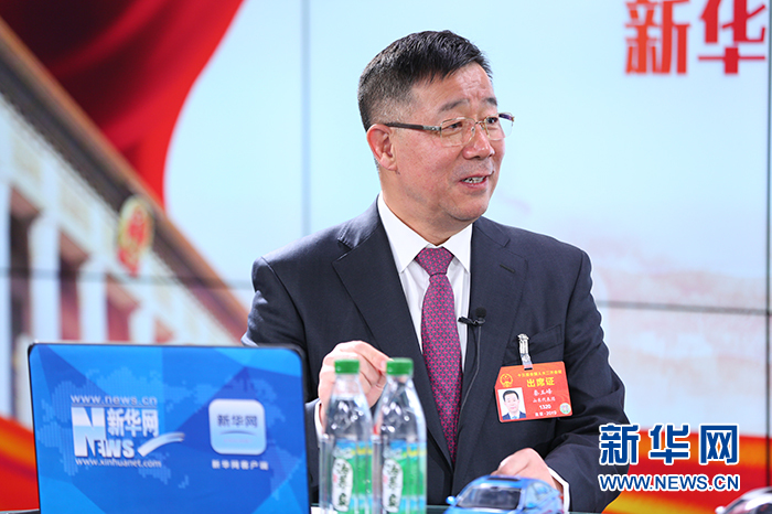 3月12日,全國人大代表、東阿阿膠黨委書記、總裁秦玉峰做客新華網(wǎng)2019全國兩會特別報道。新華網(wǎng)?陳延特 攝