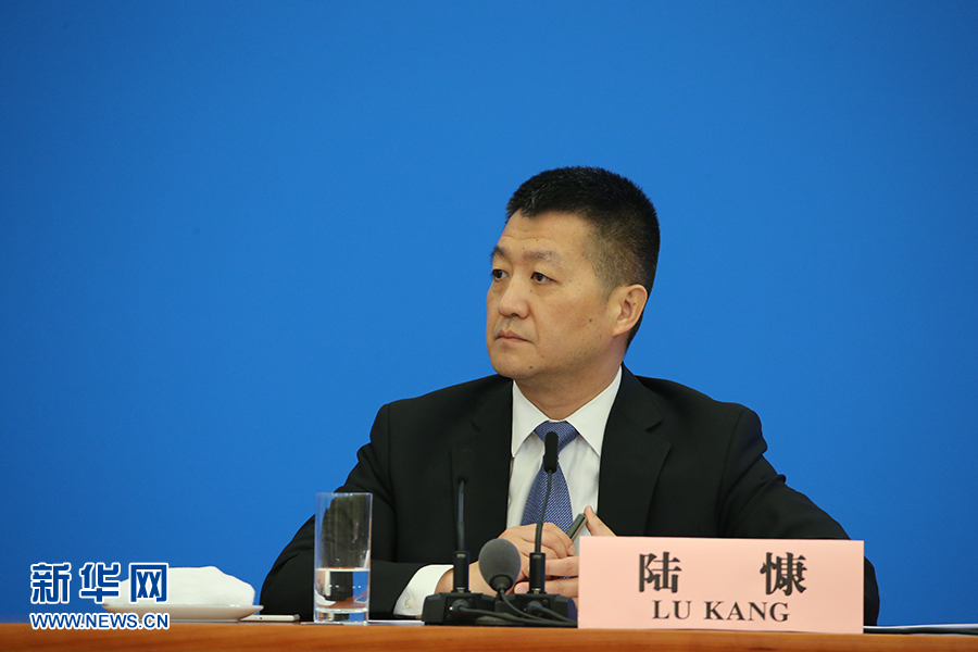 3月15日上午十三屆全國人大二次會議閉幕后,國務(wù)院總理李克強(qiáng)在人民大會堂三樓金色大廳會見采訪十三屆全國人大二次會議的中外記者并回答記者提出的問題。圖為記者會主持人陸慷。新華網(wǎng)/中國政府網(wǎng) 劉廈 攝?