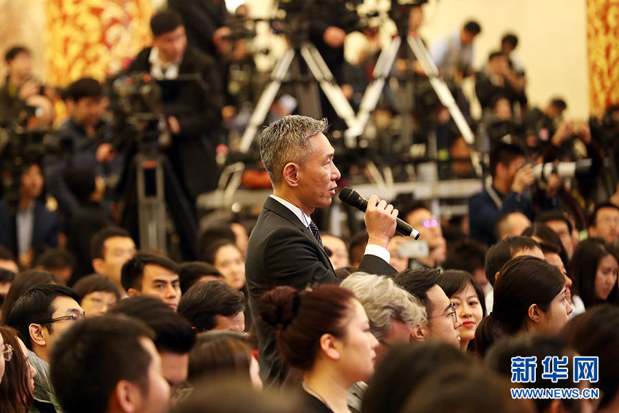 3月15日上午十三屆全國人大二次會議閉幕后,國務(wù)院總理李克強在人民大會堂三樓金色大廳會見采訪十三屆全國人大二次會議的中外記者并回答記者提出的問題。圖為路透社記者提問。新華網(wǎng)/中國政府網(wǎng)?陳杰 攝