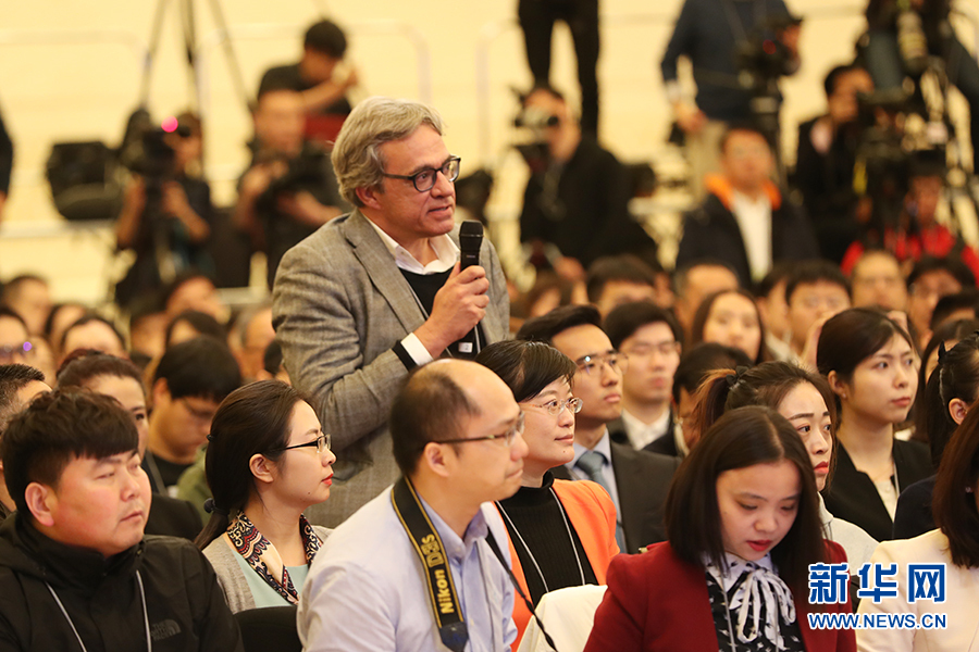 3月15日上午十三屆全國(guó)人大二次會(huì)議閉幕后,國(guó)務(wù)院總理李克強(qiáng)在人民大會(huì)堂三樓金色大廳會(huì)見(jiàn)采訪(fǎng)十三屆全國(guó)人大二次會(huì)議的中外記者并回答記者提出的問(wèn)題。圖為西班牙記者提問(wèn)。新華網(wǎng)/中國(guó)政府網(wǎng)?陳杰 攝