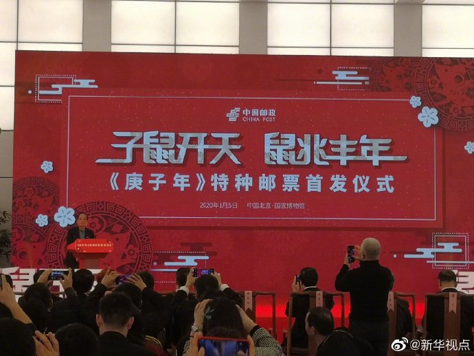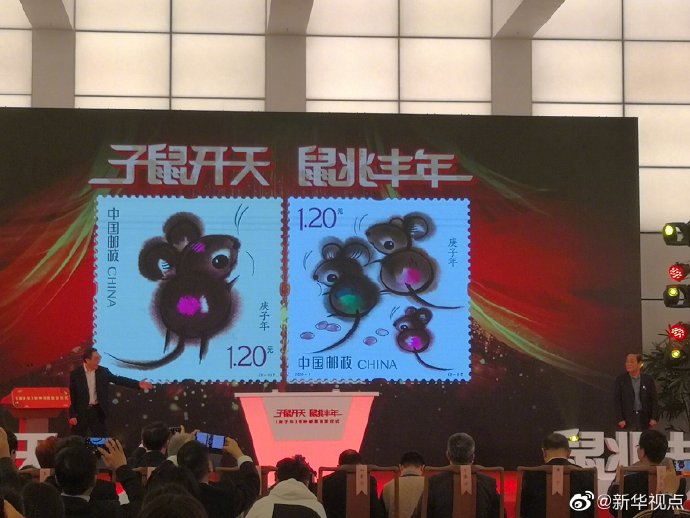 《庚子年》特種郵票首發(fā)儀式5日在中國國家博物館舉行。鼠年生肖郵票第一圖名為“子鼠開天”,第二圖為“鼠兆豐年”。郵票設(shè)計者為著名藝術(shù)家韓美林先生。畫面運用裝飾小寫意的畫法,結(jié)合傳統(tǒng)國畫的渲染技藝,展現(xiàn)了生肖鼠的可愛萌動,預(yù)示著偉大祖國的繁榮富強。5日起,集郵愛好者在全國指定郵政網(wǎng)點、集郵網(wǎng)廳、中國郵政手機客戶端和中國郵政微郵局集郵微信商城均可購買《庚子年》特種郵票。(記者趙文君)?