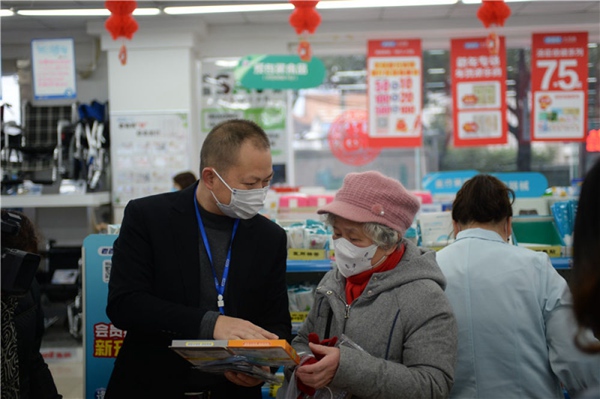1月23日,在長沙一家老百姓大藥房內(nèi),店員向市民介紹不同類型的口罩。當(dāng)日,長沙不少市民來到藥店購買口罩。長沙連鎖藥企老百姓大藥房質(zhì)量負(fù)責(zé)人表示,為使市民都能買到口罩,防止囤貨,每位進(jìn)店市民限購五份口罩;自新型冠狀病毒感染的肺炎疫情發(fā)生以來,店內(nèi)口罩價格沒有變化。新華社發(fā)(陳振海 攝)