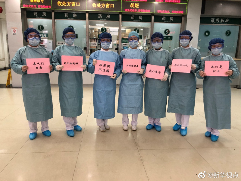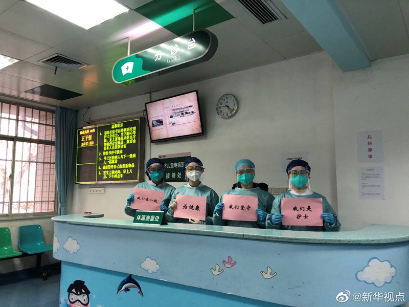 “不畏懼、不退縮”“我們堅(jiān)守” “親人們,勿念。”除夕,武漢同濟(jì)醫(yī)院兒科醫(yī)護(hù)人員在交班間隙拍了幾張?zhí)貏e的拜年照片發(fā)給家人和同事,為武漢市的醫(yī)務(wù)人員加油,也讓家人放心。除夕,本應(yīng)是闔家團(tuán)圓的時(shí)刻,但因?yàn)橥蝗缙鋪?lái)的疫情,許多醫(yī)務(wù)人員必須堅(jiān)守在臨床第一線。為了讓父母放心,讓丈夫安心,也為了給全市堅(jiān)守在最前線的醫(yī)護(hù)同行加油鼓勁,今天交班時(shí),她們拍下了這樣一組照片。(記者李勁峰、胡喆)