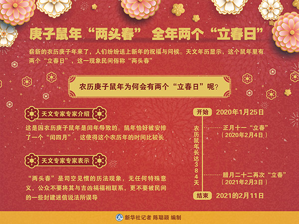 圖表:庚子鼠年“兩頭春” 全年兩個“立春日” 新華社記者 陳聰穎 編制