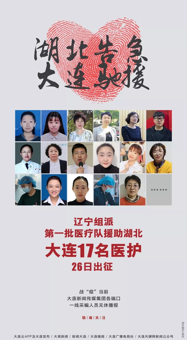 記者從大連市衛(wèi)生健康委獲悉,我市確定了17名醫(yī)護人員參與到遼寧第一批援助湖北應(yīng)對新型冠狀病毒感染的肺炎疫情醫(yī)療隊中,今日早上將出征馳援。