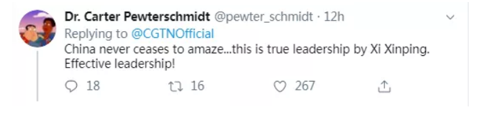 “中國從來沒有停止震驚世界,這是真正的領(lǐng)導(dǎo)力!高效的領(lǐng)導(dǎo)力!”