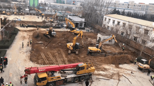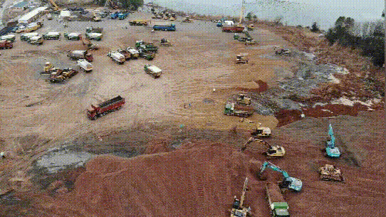 經(jīng)過一天一夜施工,新型冠狀病毒隔離房項(xiàng)目入場挖機(jī)41臺,推土機(jī)15臺,壓路機(jī)4臺,自卸車40臺,327名管理人員和336名工人集結(jié)完畢,累計(jì)平整全部場地9000平方米,內(nèi)轉(zhuǎn)土方2500立方米。
