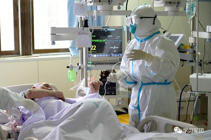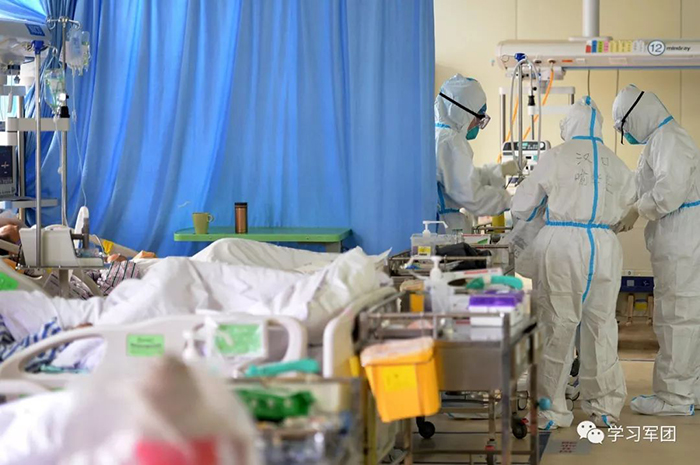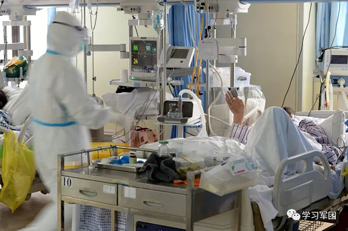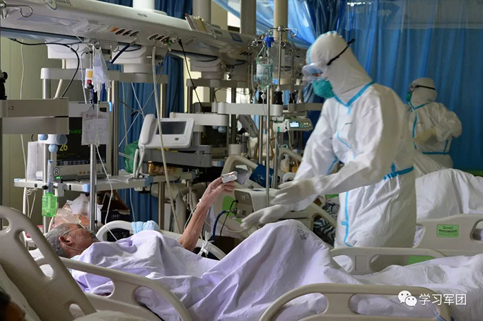 1月27日上午,海軍軍醫(yī)大學醫(yī)療隊醫(yī)護人員在漢口醫(yī)院重癥監(jiān)護室對新型冠狀病毒感染的肺炎患者進行救治。在患者眼中,醫(yī)護人員就是他們的“救星”。解放軍報記者范顯海攝