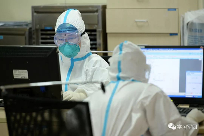 1月27日上午,海軍軍醫(yī)大學醫(yī)療隊醫(yī)護人員在漢口醫(yī)院重癥監(jiān)護室對新型冠狀病毒感染的肺炎患者進行救治。醫(yī)護人員查看檢查結果,評估患者病情。解放軍報記者范顯海攝