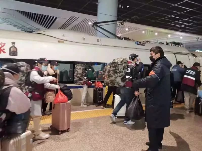 醫(yī)療隊(duì)員們搭乘高鐵緊急出發(fā)