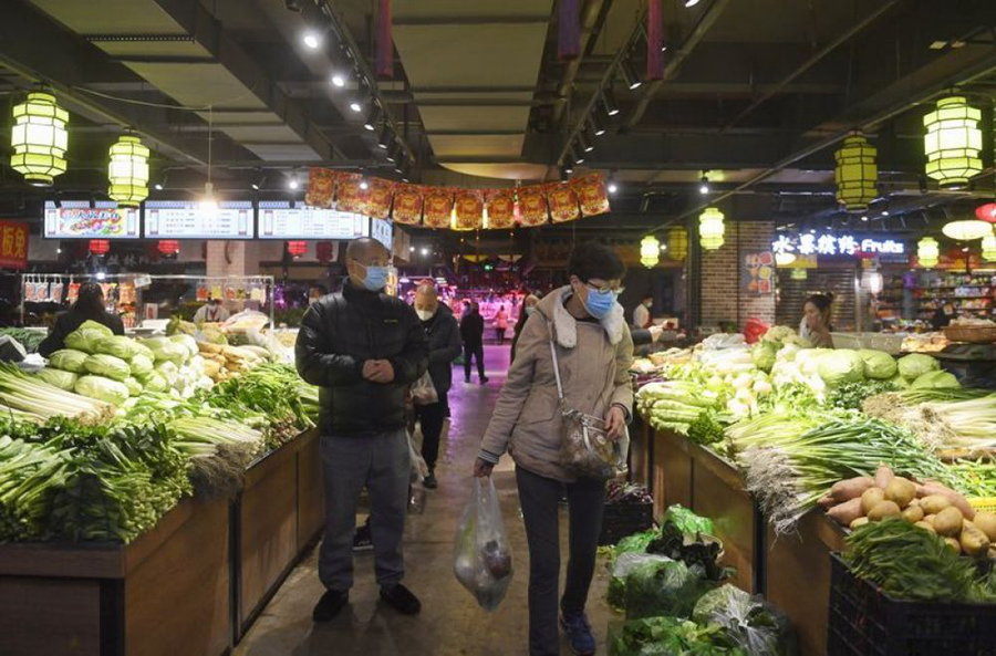 1月28日,成都市民在益民菜市挑選蔬菜。新華社記者劉坤攝