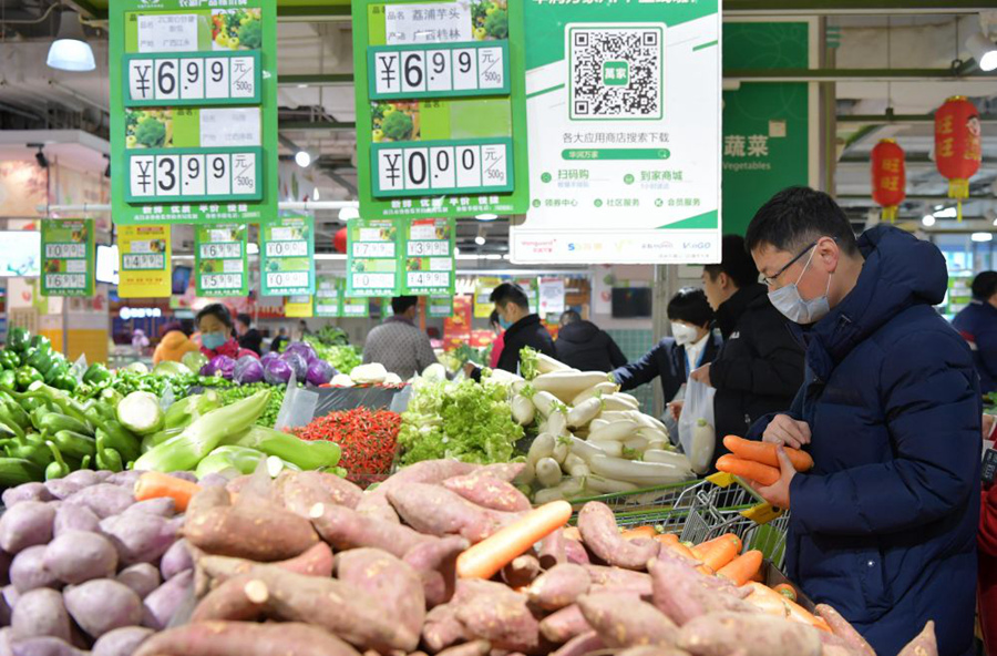 1月28日,在南昌市紅谷灘新區(qū)一家超市,市民在選購蔬菜。近日,江西各地加大價(jià)格監(jiān)測(cè)和執(zhí)法檢查力度,著力維護(hù)市場(chǎng)價(jià)格穩(wěn)定。目前,全省重點(diǎn)生活必需品貨源充足,市場(chǎng)供應(yīng)有保障,價(jià)格總體穩(wěn)定。新華社記者彭昭之?dāng)z