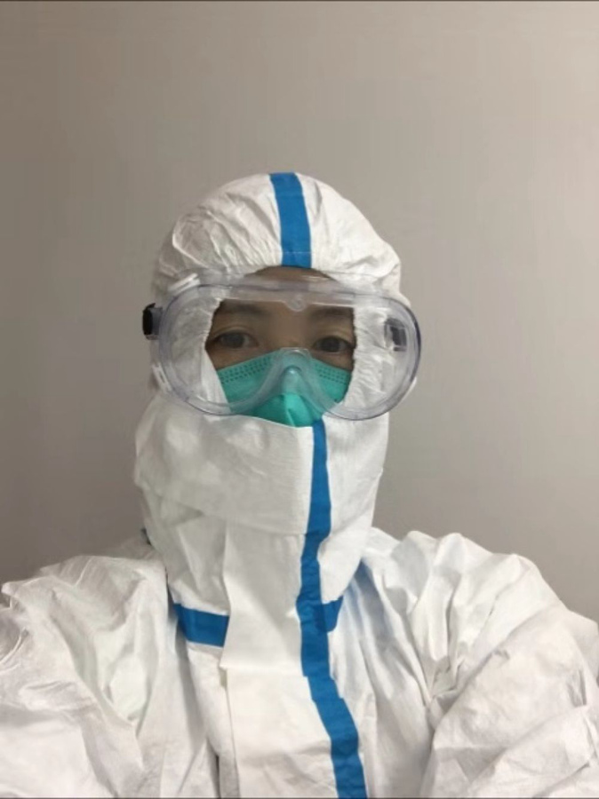 這是穿上防護服的王軼娜。(圖片由王軼娜同事中南大學湘雅二醫(yī)院趙麗萍提供)