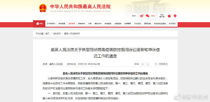 最高法有關(guān)訴訟服務和接訪場所暫時關(guān)閉-新華網(wǎng)