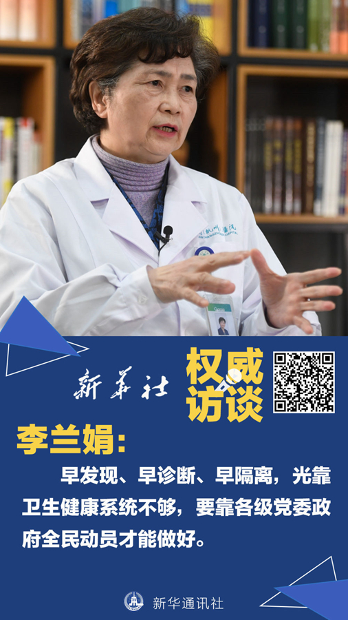 新型冠狀病毒感染的肺炎疫情每一天、每一點(diǎn)變化都牽動(dòng)人心。1月29日,“新華視點(diǎn)”記者專訪了中國工程院院士、國家衛(wèi)生健康委高級(jí)別專家組成員李蘭娟。她說,對(duì)傳染病思想上永遠(yuǎn)不能松懈。依靠各級(jí)黨委政府全民總動(dòng)員,依靠廣大專業(yè)的醫(yī)務(wù)人員,我們一定能勝利。