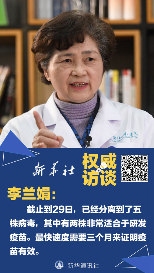 李蘭娟:研發(fā)疫苗第一步是要獲得病毒株。目前,我們已經(jīng)分離到了五株病毒,其中有兩株非常適合于研發(fā)疫苗。分離到種子株之后,還要把種子株的病毒在細(xì)胞中培養(yǎng),讓它長到一定的量,這就需要一個(gè)多月。大量的細(xì)胞病毒拿到了,還要進(jìn)行滅活,并對(duì)它的免疫原性如何,能不能預(yù)防、有沒有效果、有沒有毒力、會(huì)不會(huì)造成新的感染等開展實(shí)驗(yàn)。