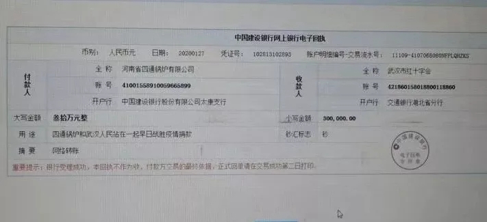 1月27日,太康縣首屆“最美退役軍人”、河南省四通鍋爐有限公司總經(jīng)理馮坤,在防控新型冠狀病毒感染肺炎的嚴(yán)峻斗爭中,主動向武漢紅十字會捐款30萬元,用于支持疫情防控。