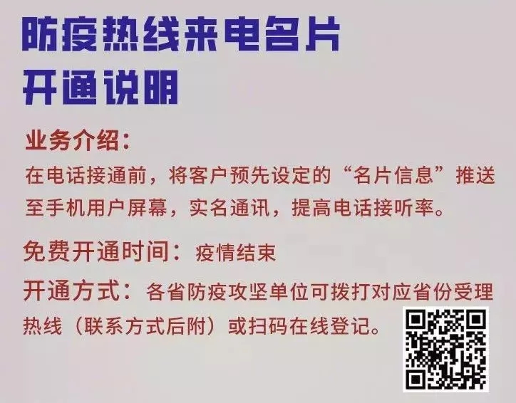 中國電信免費為各地防疫熱線提供來電名片服務(wù),保證關(guān)鍵時期的電話第一時間快速接通。