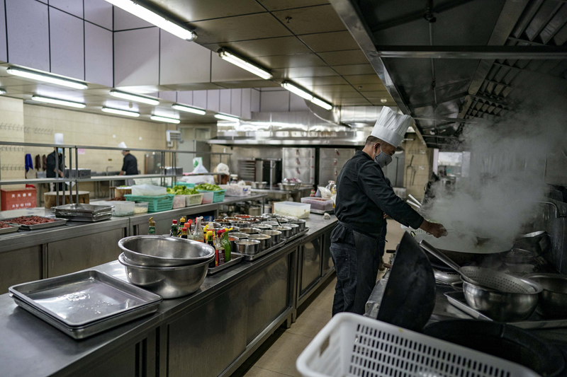 1月29日,云南省一安置點(diǎn)的廚師在為湖北滯留旅客準(zhǔn)備晚飯。