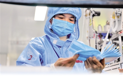 “疫情面前,我們能做的就是克服一切困難,開足馬力生產(chǎn),多生產(chǎn)一個口罩,就能為阻擋病毒傳播多出一份力。”采訪時,正值深夜11時,口罩車間燈火通明,兩班倒的工人在埋頭專注著工作。