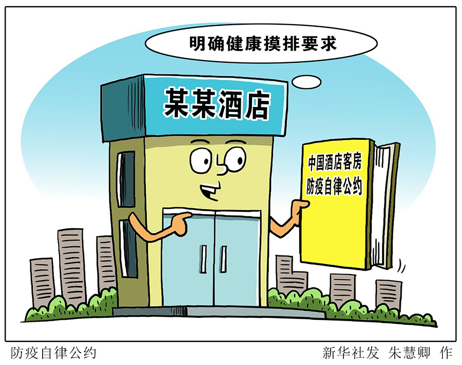 丁志剛表示,此次公約從防疫消毒物資、人員防疫管理、環(huán)境設(shè)施防疫管理、疫情信息管理以及服務(wù)承諾等五個(gè)方面對(duì)酒店商家進(jìn)行了防疫指導(dǎo)。在人員防疫方面,公約要求,酒店工作人員須佩帶口罩、每日健康登記;針對(duì)住客及訪客,需開展細(xì)致的體溫檢測(cè)和健康摸排。