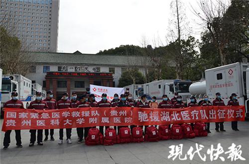 2月9日,根據(jù)國家衛(wèi)生健康委安排,國家緊急醫(yī)學(xué)救援隊(貴州)馳援湖北武漢執(zhí)行傳染病救治任務(wù)。救援隊由貴州醫(yī)科大學(xué)附屬醫(yī)院急診醫(yī)學(xué)科、感染管理科、內(nèi)科ICU、省緊急救援中心96999、檢驗科、影像科、肝膽外科等科室共42名人員組成。