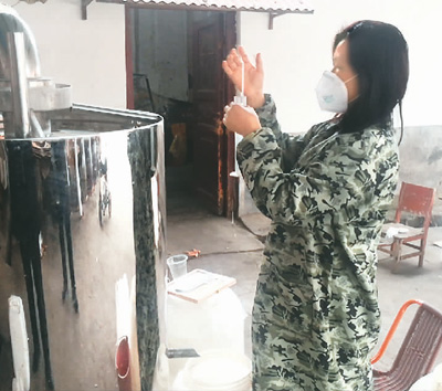 凌晨5點(diǎn)多,村里各戶人家睡得正香,周家廠房里鍋灶燒水聲“滋滋啦啦”響了起來。夫婦倆穿著工作服,倒出白酒放入鍋爐蒸餾,眼睛一眨不眨盯著刻度變化——提純酒精這事兒,可來不得半點(diǎn)馬虎,既要保障生產(chǎn)安全,又要讓提取出來的酒精符合醫(yī)用“75度”標(biāo)準(zhǔn)。