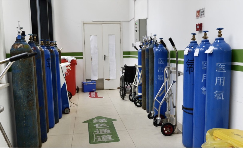 “笑笑,今天的氧氣罐多少個?”“32個。”宋笑笑和另一名護士在走廊盡頭清點氧氣罐后,發(fā)現(xiàn)已經(jīng)空了6瓶。