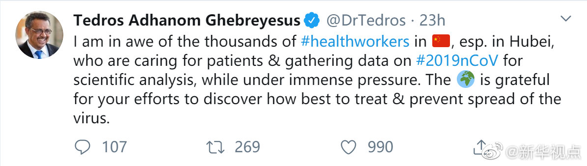 世界衛(wèi)生組織總干事向抗擊新冠肺炎疫情的中國醫(yī)護人員致敬-新華網(wǎng)