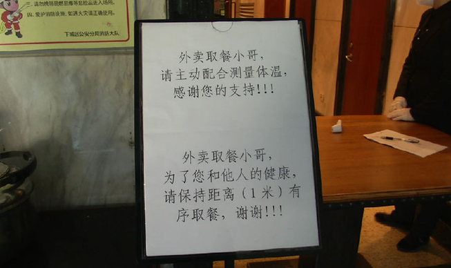 為了保證食物的口感與安全,餐廳方面在各個環(huán)節(jié)也做了努力,比如新白鹿今天所有的食材,就是員工清晨4點鐘去采購的。取餐時會要求取餐人員保持一米以上的距離,并給他們配備了速干的酒精消毒液用于手部的消毒。