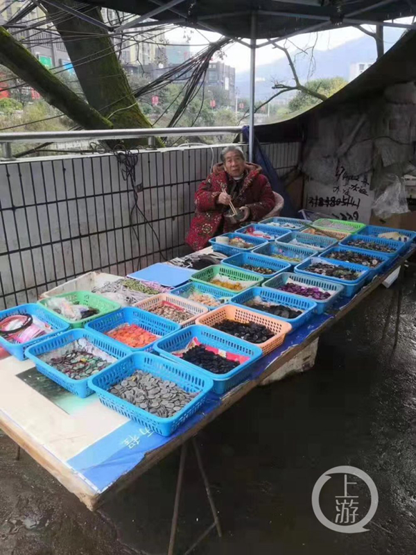 倪素英老人原本在萬(wàn)新農(nóng)貿(mào)市場(chǎng)門(mén)口擺攤,賣(mài)紐扣、針線、鞋墊一類(lèi)的百貨用品。