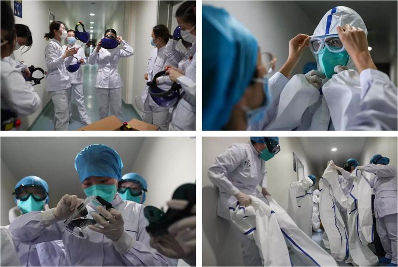 穿防護(hù)服的步驟非常重要,因?yàn)橹挥写┑捻樞蜃鰧?duì)了,脫防護(hù)服時(shí)才不會(huì)接觸到污染源。每一步都攸關(guān)生命,容不得半點(diǎn)差錯(cuò)。一些年輕護(hù)士由于身材過于瘦小,而防護(hù)服又很大,她們會(huì)用橡皮筋把防護(hù)服仔仔細(xì)細(xì)扎嚴(yán)實(shí)再進(jìn)病房。