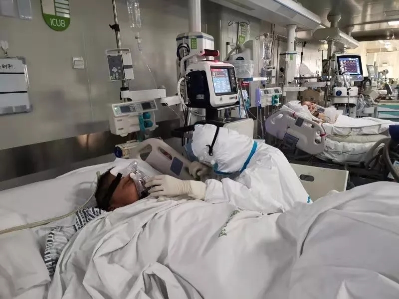 本來(lái)想讓她適應(yīng)之后,安心休息,但隨著時(shí)間延長(zhǎng),她雖然心理上接受了,可是氣道壓過(guò)大,呼吸機(jī)還是漏氣,還是需要有人陪著,我只好幫她扶著無(wú)創(chuàng)面罩,保持不漏氣的力度。阿姨的呼吸慢慢平穩(wěn)了,在我趴著的時(shí)候,她用武漢話對(duì)我說(shuō),謝謝你,丫頭,我舒服多了,好人有好報(bào)……那一刻,我覺(jué)得用自己學(xué)到的技能幫到了患者,挺溫暖的。