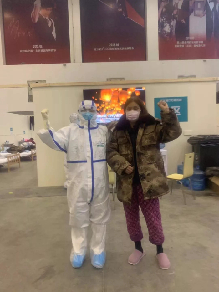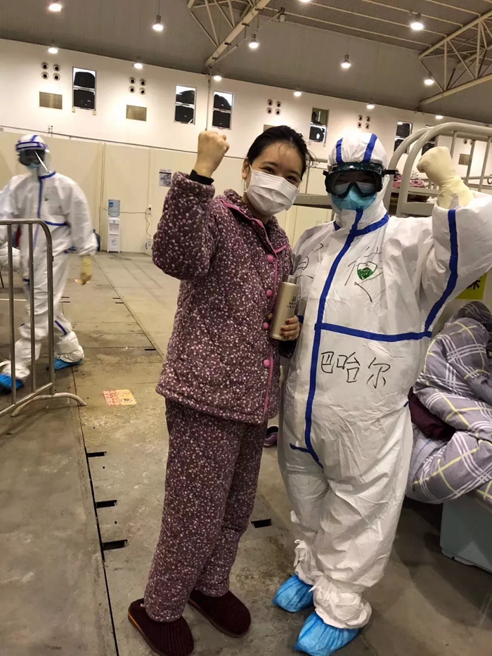 咱們艙里面是輕癥患者,他們特別開(kāi)心,新疆的古麗來(lái)了!他們本來(lái)是各種情緒都有,但是我一進(jìn)去給他們跳舞,他們就覺(jué)得放松了。然后又看他們吃飯,陪他們聊天,只要做好防護(hù)沒(méi)什么可怕的,隔離了那些病菌咱不能隔離愛(ài)。