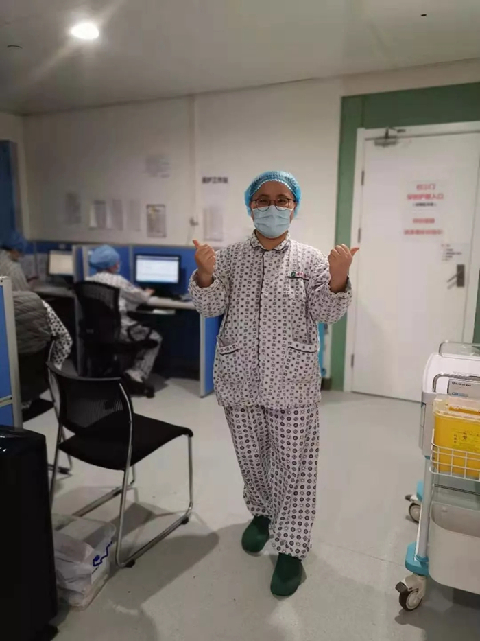 是的,我的家人在等我回家。但是患者們何嘗不是如此呢?我對(duì)她說(shuō):“婆婆,我不怕,我們的防護(hù)做得很好。您也要快點(diǎn)好起來(lái),您的家人也盼著您快點(diǎn)康復(fù),也在等著您回家呢!”她笑著點(diǎn)了點(diǎn)頭,眼眶也濕潤(rùn)了。