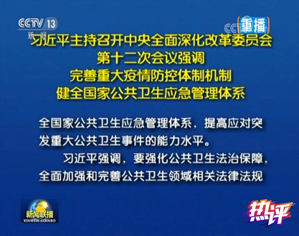 昨天的新聞稿,打破了近年來的慣例——在導語之后、介紹會議審議通過的若干文件之前,出現(xiàn)了習近平總書記的6段重要講話內(nèi)容,緊緊圍繞“完善重大疫情防控體制機制,健全國家公共衛(wèi)生應急管理體系”,提了五個方面的要求。這體現(xiàn)了此事的重要與緊迫。習近平總書記針對這次疫情暴露出來的短板和不足,立足當前、放眼長遠,圍繞這一重大改革主題,作了一次全面動員、全面部署。